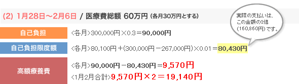 ※2 高額療養費を申請される月以前の直近12ヵ月の間に高額療養費の支給を受けた月が3ヵ月以上ある場合は、4ヵ月目から「多数該当」という扱いになり、自己負担限度額が軽減されます。