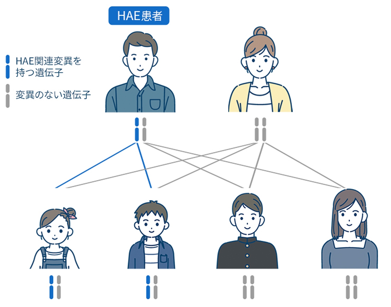 HAEは、親から子に遺伝する遺伝性の病気です。