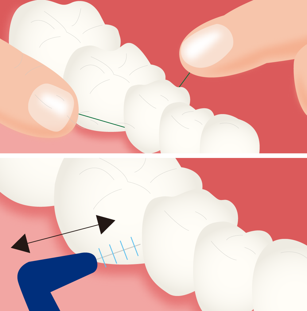 ・歯ブラシはペンを持つように軽く握り、力を入れすぎない