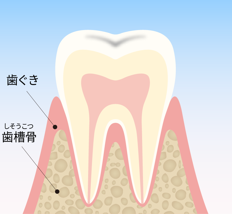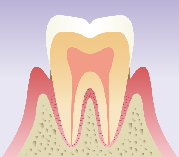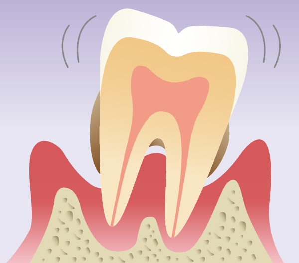 歯と歯ぐきの間に深いすき間(歯周ポケット)ができ、そのままにしておくと歯を支える骨(歯槽骨)などの歯周組織が破壊されて、結果的に歯を失う原因になります。