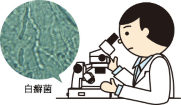 顕微鏡で、採取した爪に菌がいるかどうかを調べます。